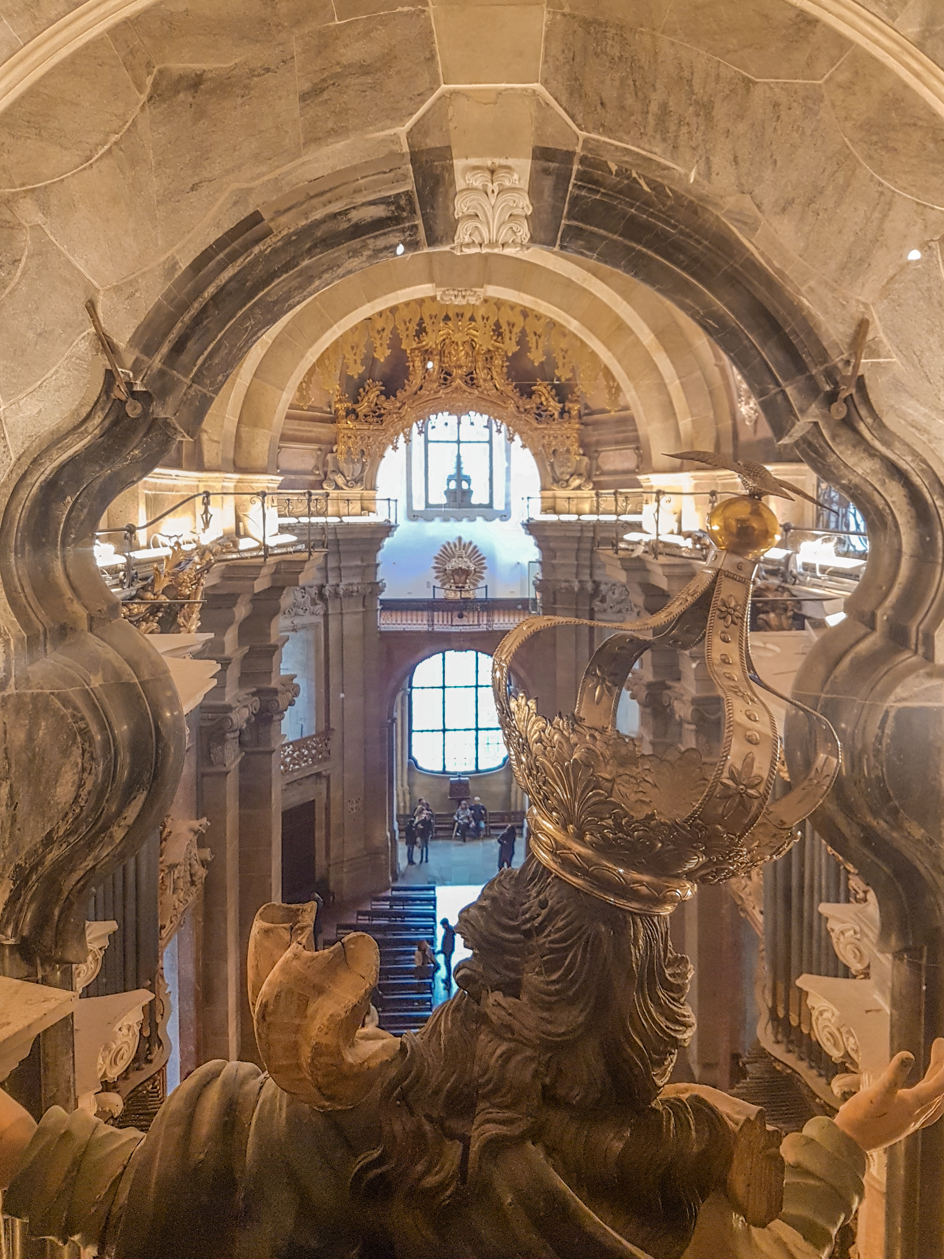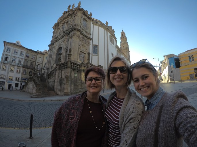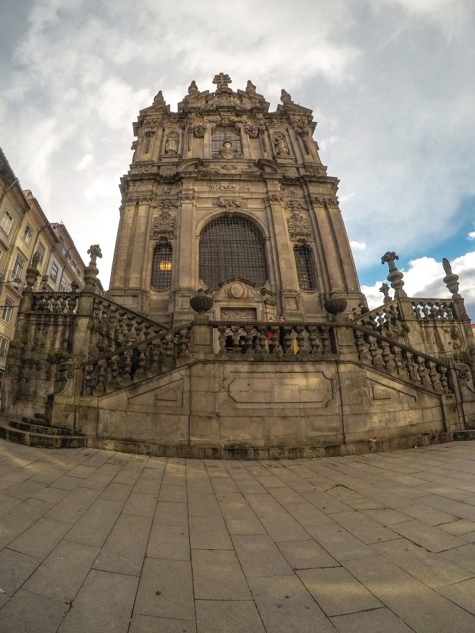 Esta foto mostra os fundos da torre e frente da Igreja, apontados em direção à Avenida dos Aliados, que eu considero o coração do Porto.