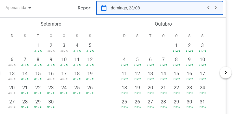 6. Para economizar, seja flexível nas datas! O calendário destes buscadores de passagens permite-nos comparar o preço mais baixo de cada dia, sem termos que pesquisar cada um individualmente! Muitas vezes, viagens no meio da semana são muito mais baratas, e podes sempre comparar isso pelos calendários destes sites. Dica: faz a pesquisa como se fosse “só ida“, que assim consegues ver exatamente quais dias são mais baratos para ir e, depois, faz o mesmo para ver as datas mais econômicas para voltar.